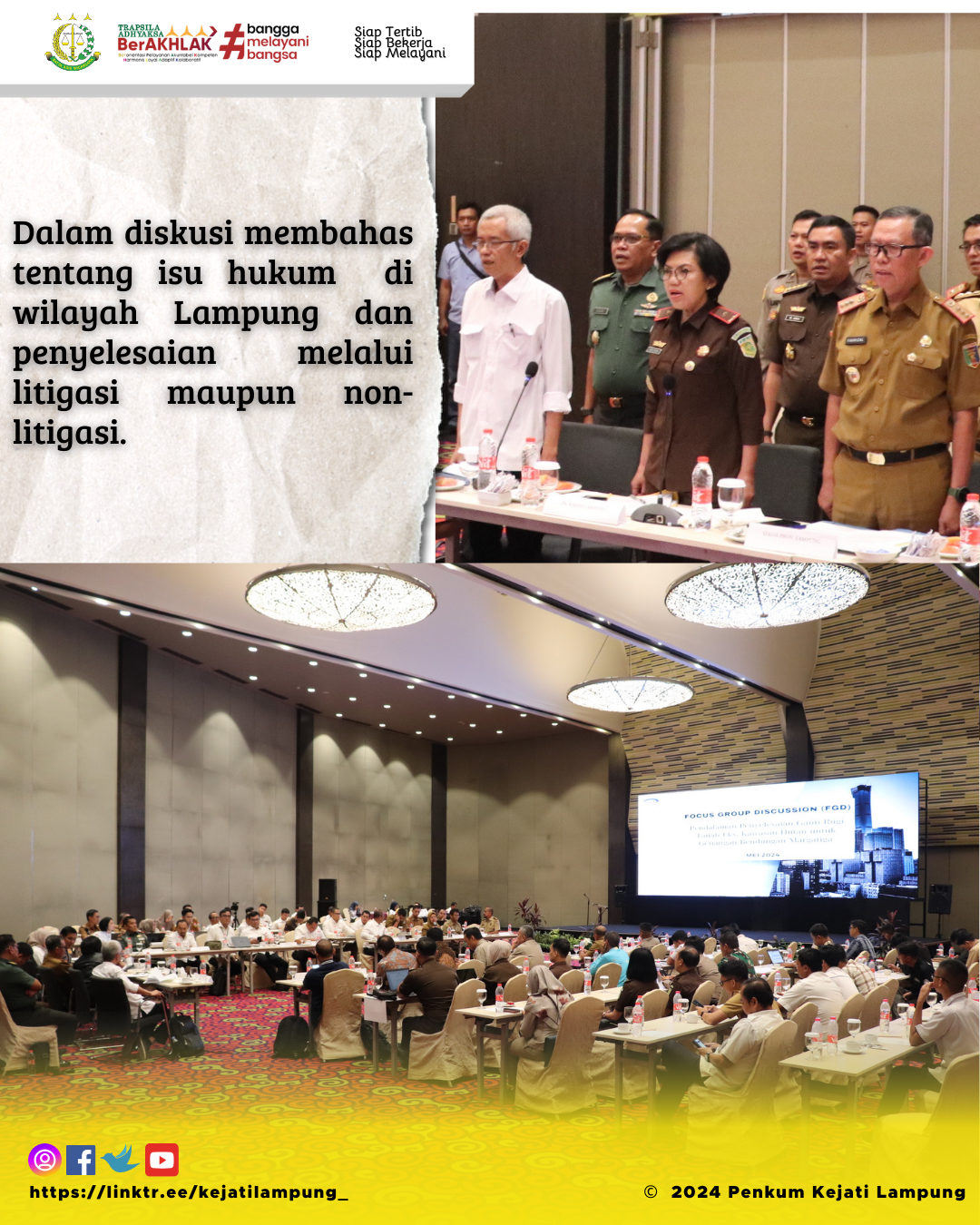 Plt. Kepala Kejaksaan Tinggi Lampung berserta jajaran menghadiri undangan Focus Group Discussion dengan tema Pendalaman Penyelesaian ganti rugi tanah eks, kawasan hutan untuk genangan bendungan margatiga Lampung timur.