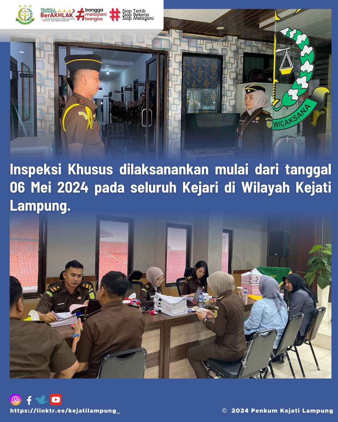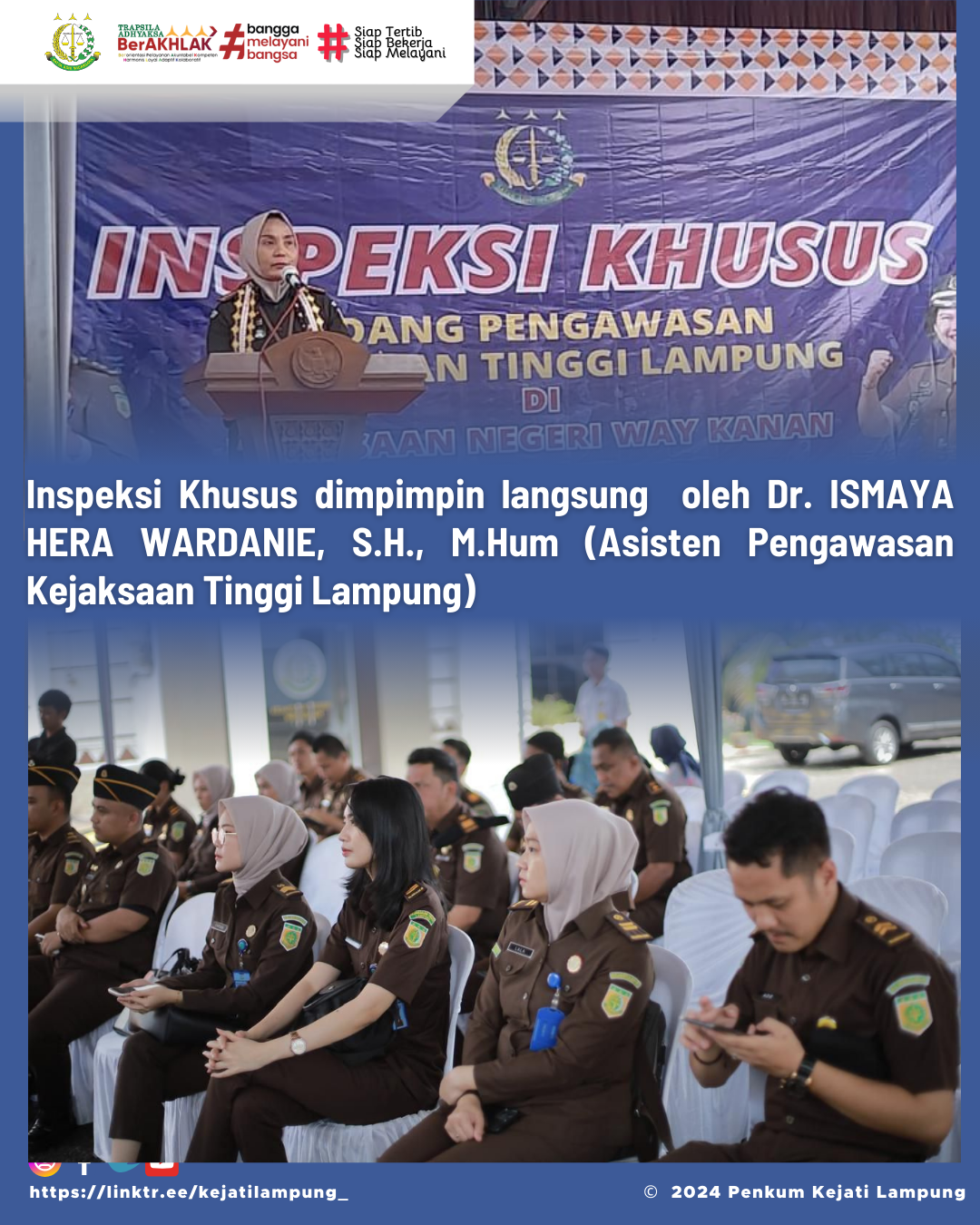 Inspeksi Khusus dimpimpin langsung oleh Dr. ISMAYA HERA WARDANIE, S.H., M.Hum (Asisten Pengawasan Kejaksaan Tinggi Lampung)