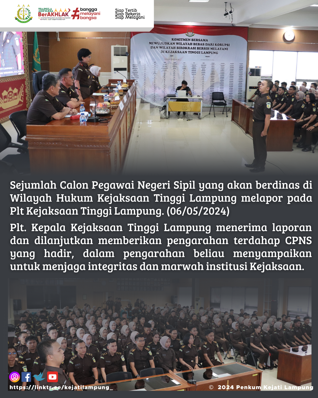 Sejumlah Calon Pegawai Negeri Sipil yang akan berdinas di Wilayah Hukum Kejaksaan Tinggi Lampung melapor pada Plt Kejaksaan Tinggi Lampung. (06/05/2024)